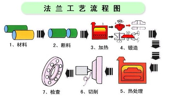 法蘭一般加工制作程序?yàn)椋嘿I原材料→切割下料→固溶→ 鍛打成型 →車床精加工。具體如圖所示: